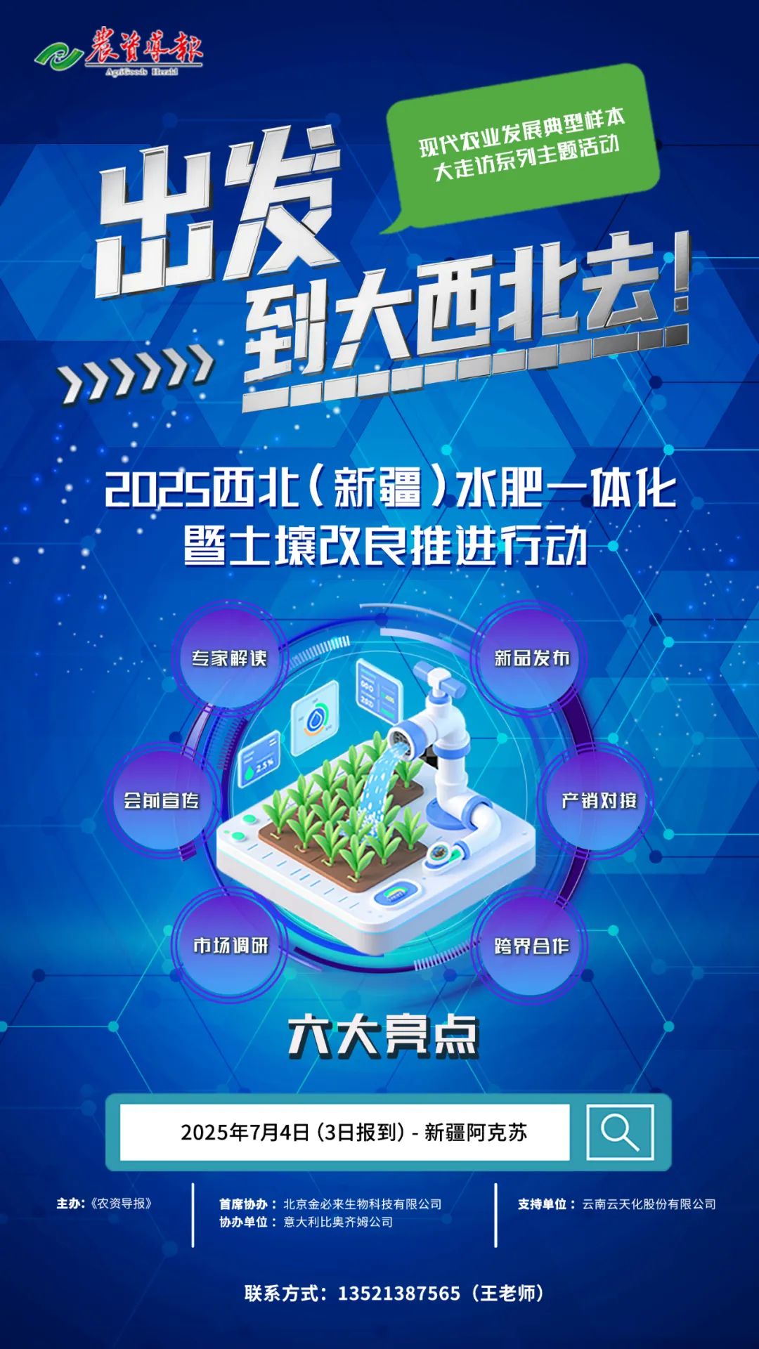 7月初,《农资导报》将在新疆阿克苏举办“西北(新疆)水肥一体化暨土壤改良推进行动(2025)”,本行动紧扣现代农业两大关键问题——水肥一体化和土壤改良,旨在引导和助力农资企业加快布局新疆市场,围绕水肥一体化和土壤改良发展农业新质生产力,为新疆粮棉等作物单产和品质提升贡献科技力量。