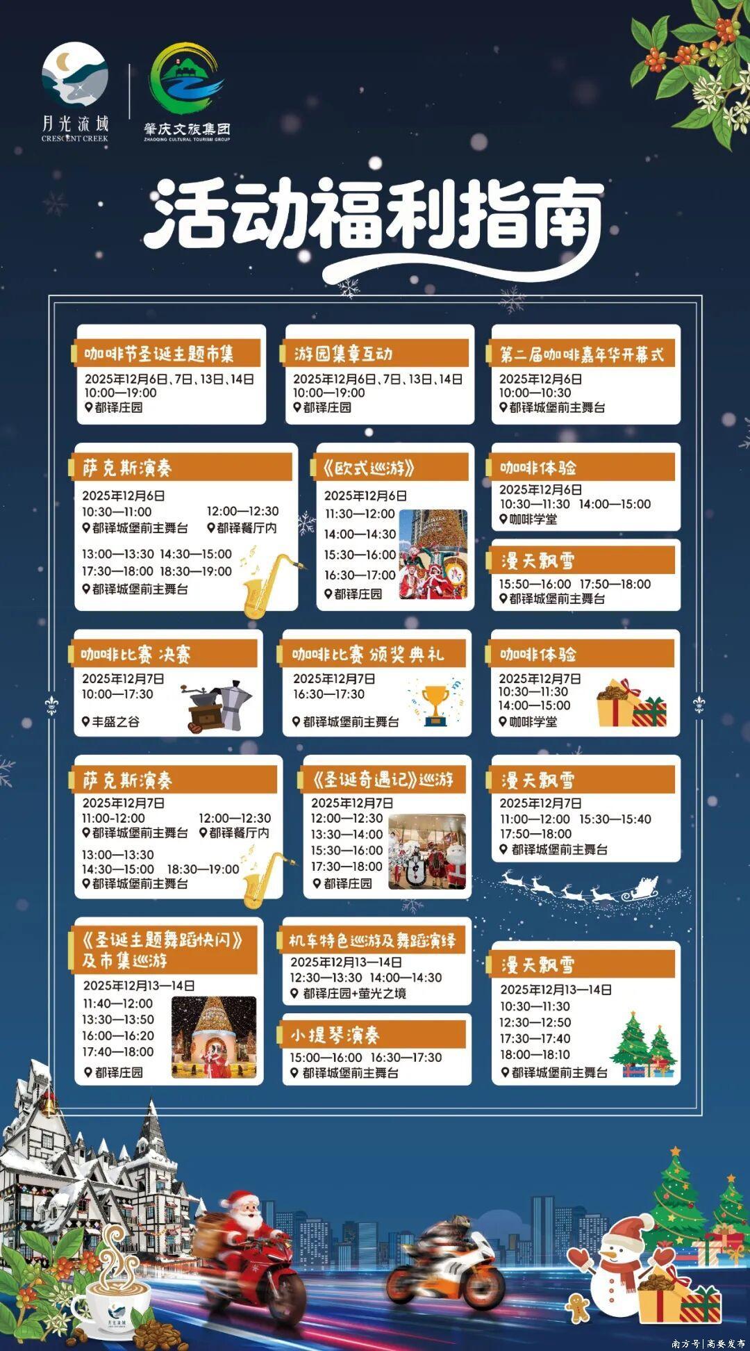 咖啡烘焙大赛、咖啡主题市集、酷飒机车巡游、欧式马车巡游、萨克斯演奏、梦幻冬日飘雪……月光流域内的都铎庄园化身“咖啡奇幻乐园”,为游客带来沉浸式咖啡体验与多元互动玩法,让咖啡爱好者、游客共同享受集咖啡文化、艺术表演与休闲娱乐于一体的冬日盛宴。